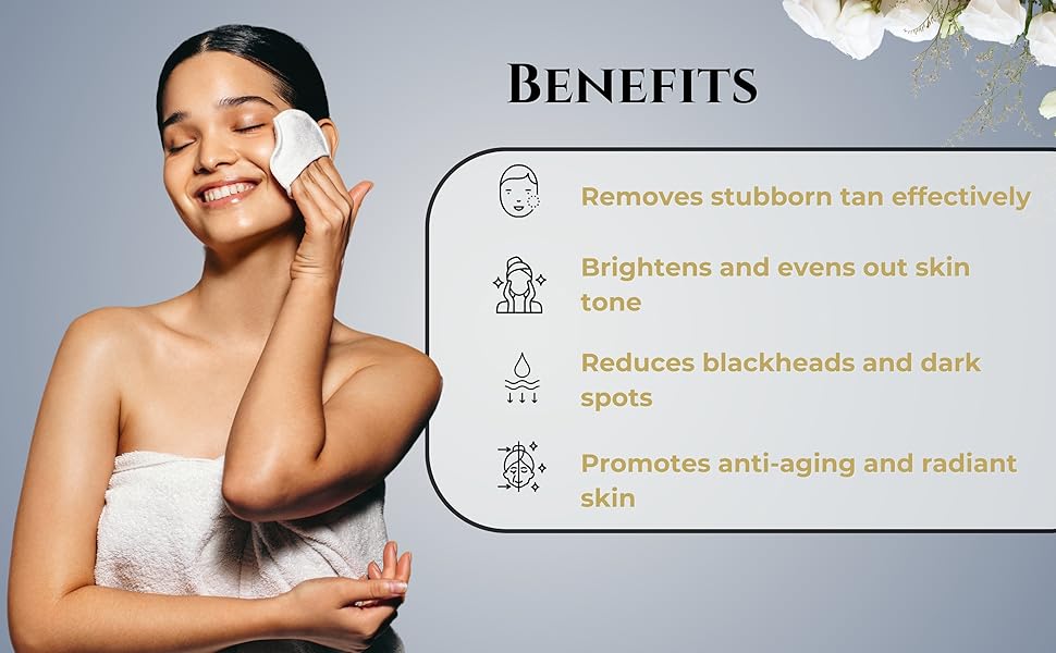 Specially formulated to diminish stubborn tan, restoring your skin's natural radiance.